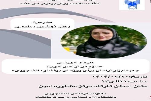 مرکز مشاوره امین واحد کرمانشاه برگزار می کند: کارگاه سهمِ من از حالِ خوب: جعبه ابزارِ آرامش برای روزهای پرفشارِ دانشجویی